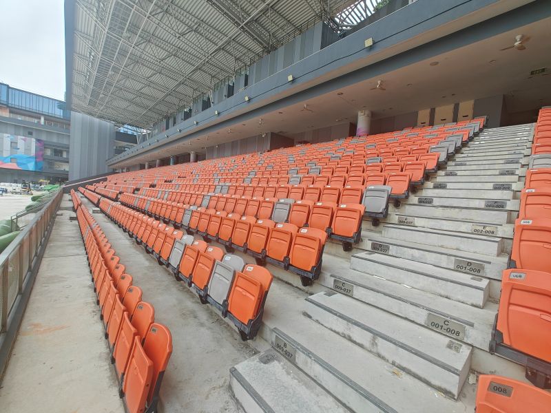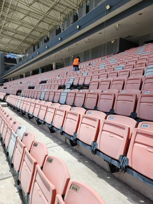 Following the confirmation based on the above sample, we completed the works within a month for the 5000 seats. The gallery below shows the work in progress for the before, one row completed and the complete deck of chairs.
